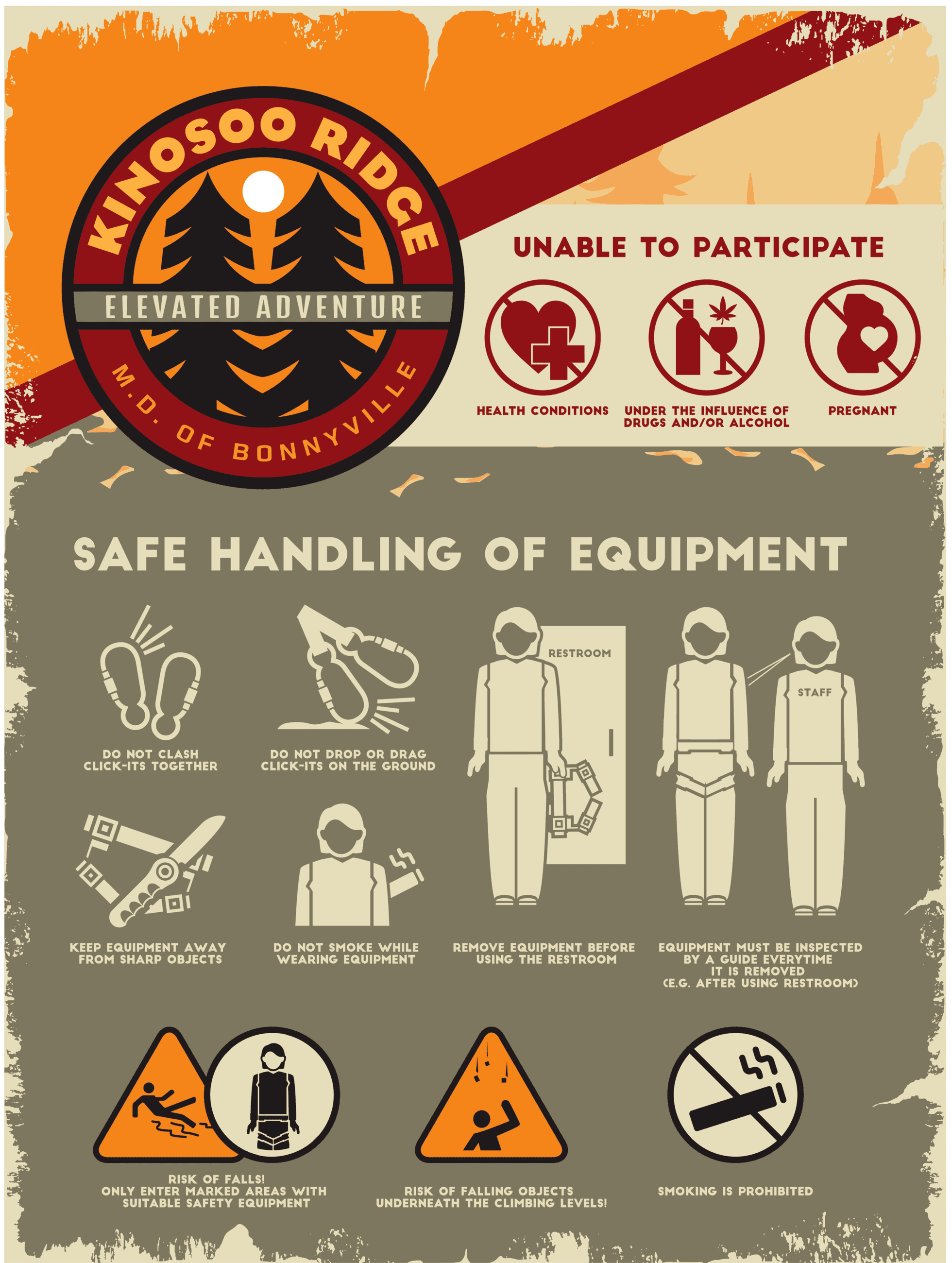 Our tower's design and safety procedures require specific harness equipment, so there is no need to bring your own harness.